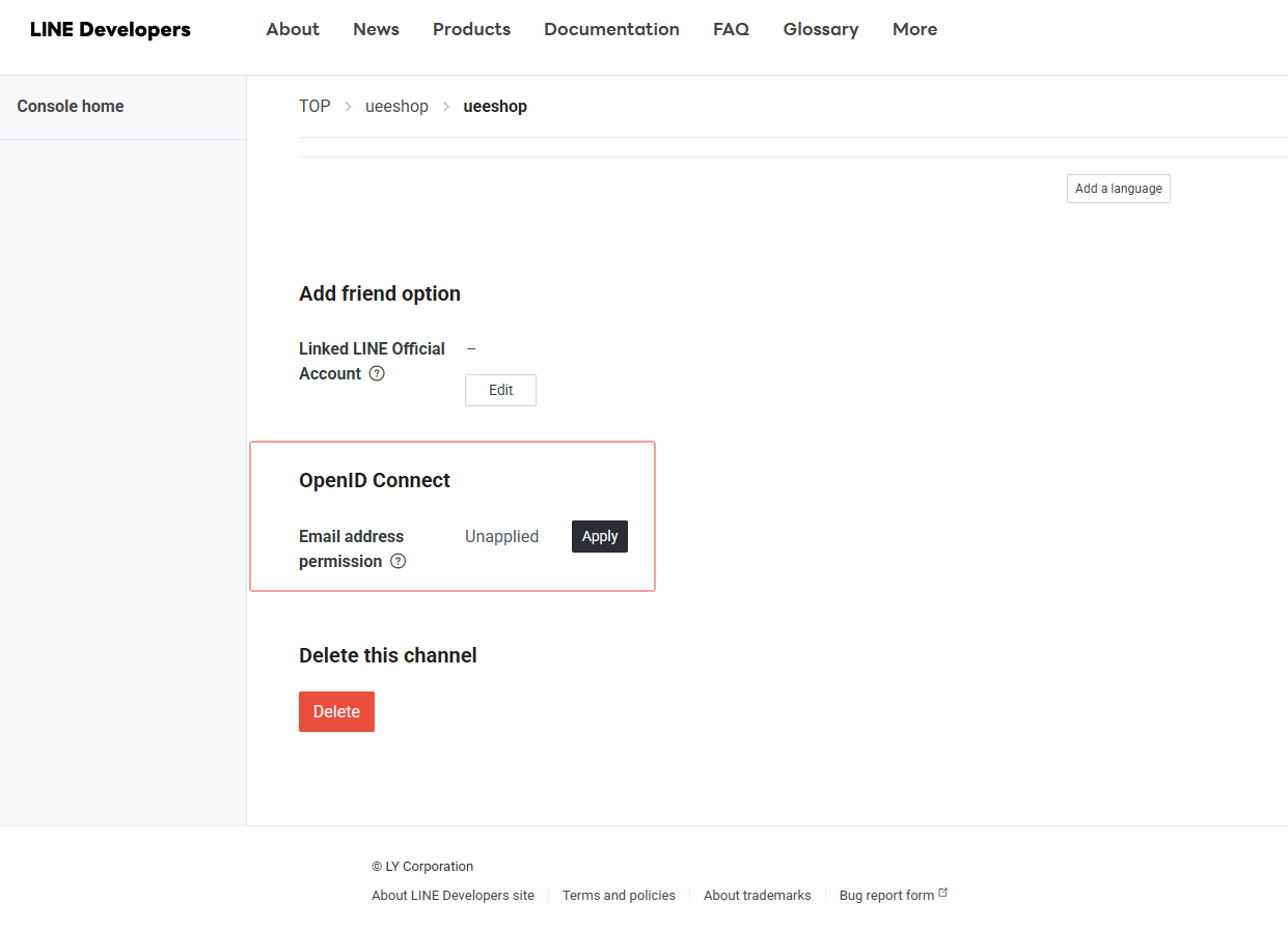 若此权限状态为 【Unapplied】,顾客将无法使用 LINE 账号注册或登录。
