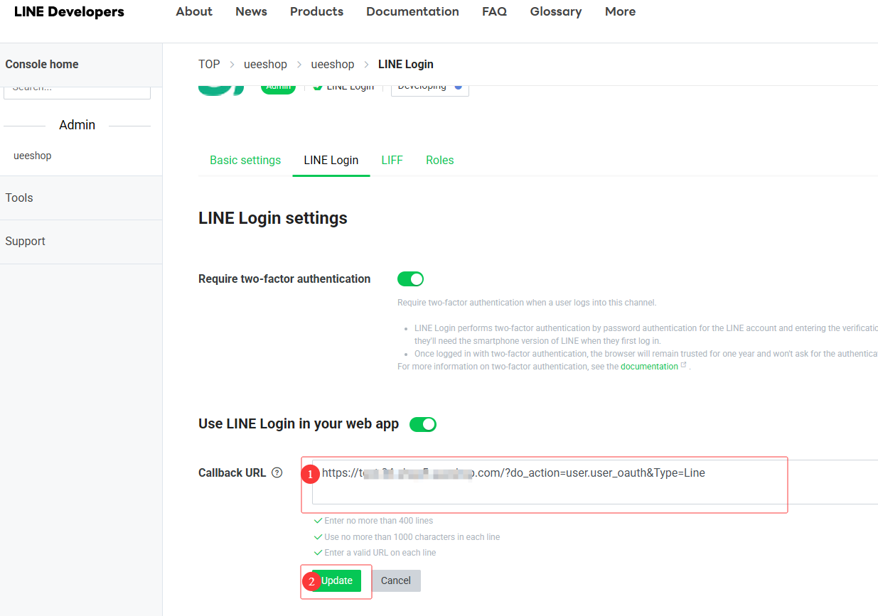 https://www.您的商店网址.com/?do_action=user.user_oauth&Type=Line