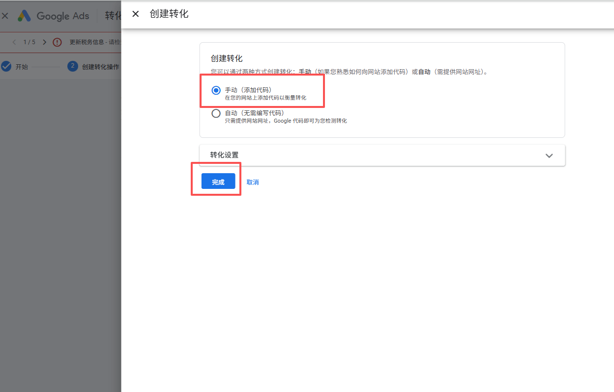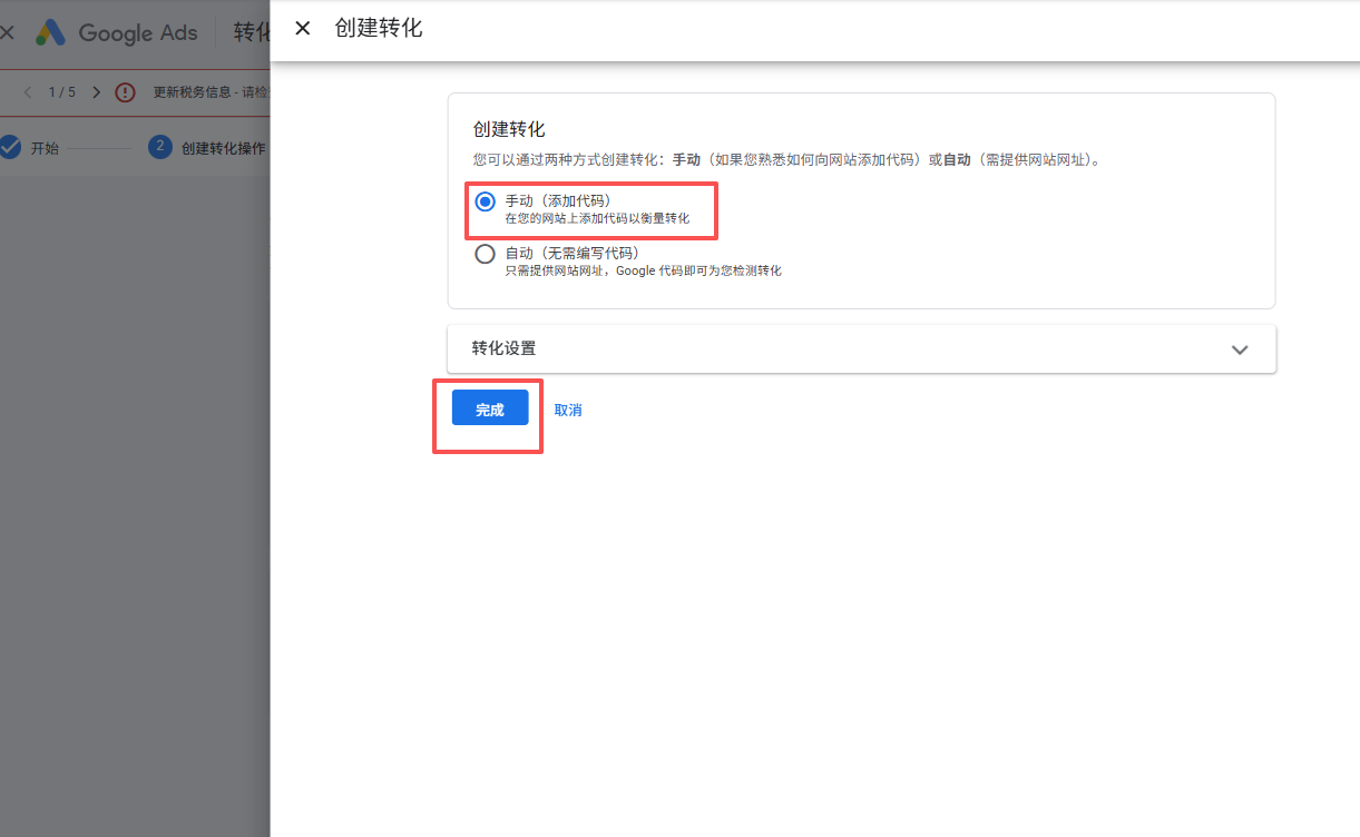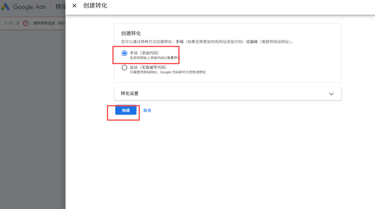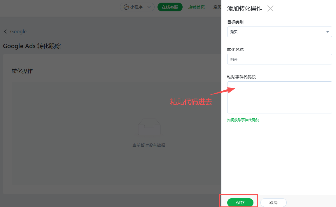 (42)每复制一个事件代码,返回到网站后台,选择对应的转化目标,并且粘贴代码保存即可