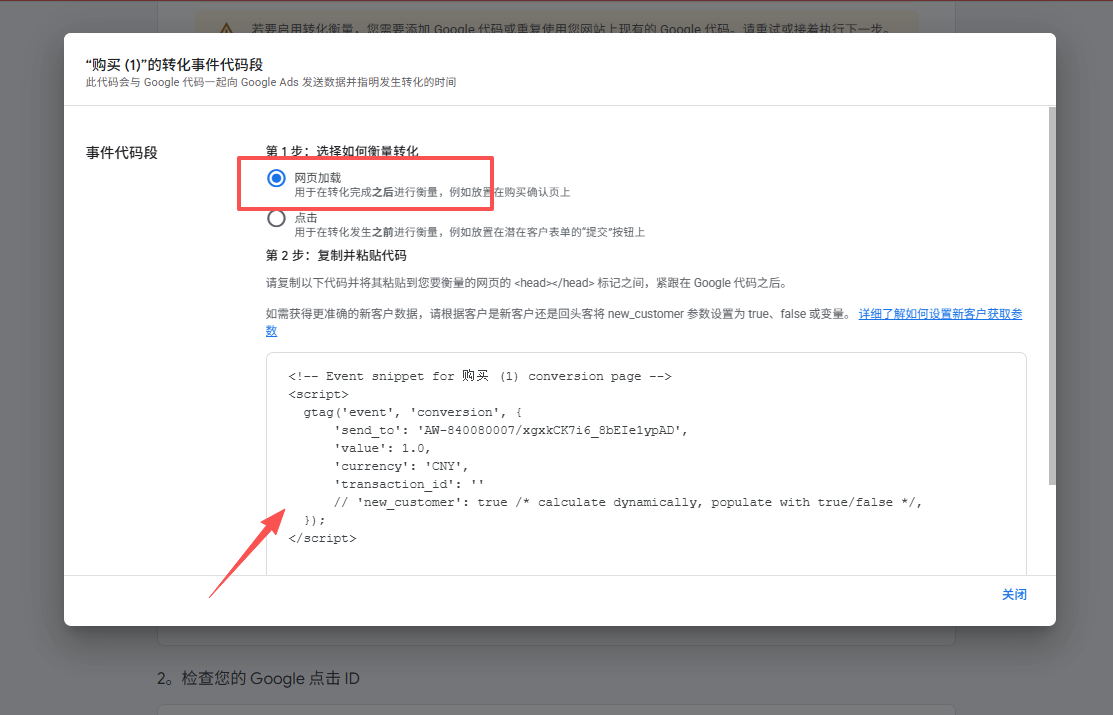 (35)安装完基础代码后,继续设置对应转化目标代码,例如点击购买的查看时间代码