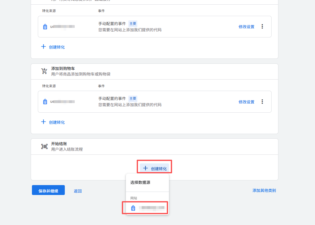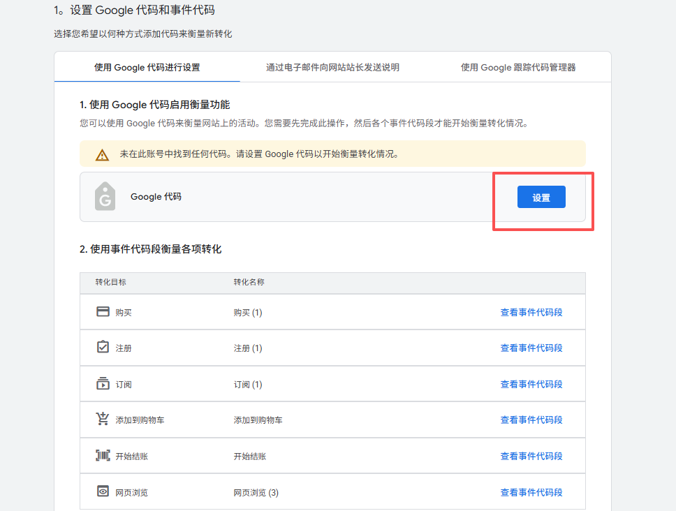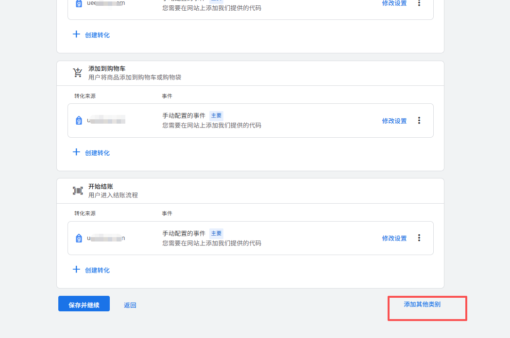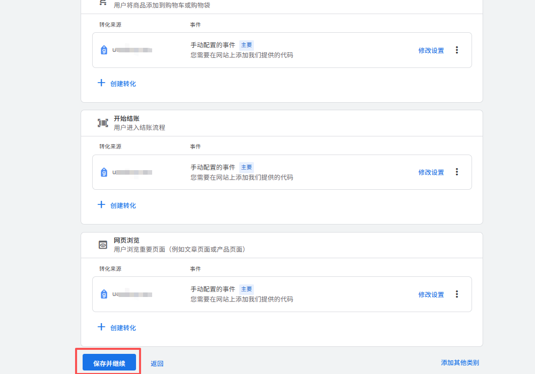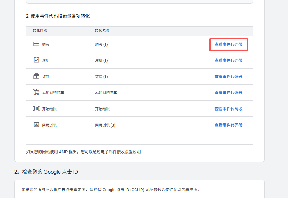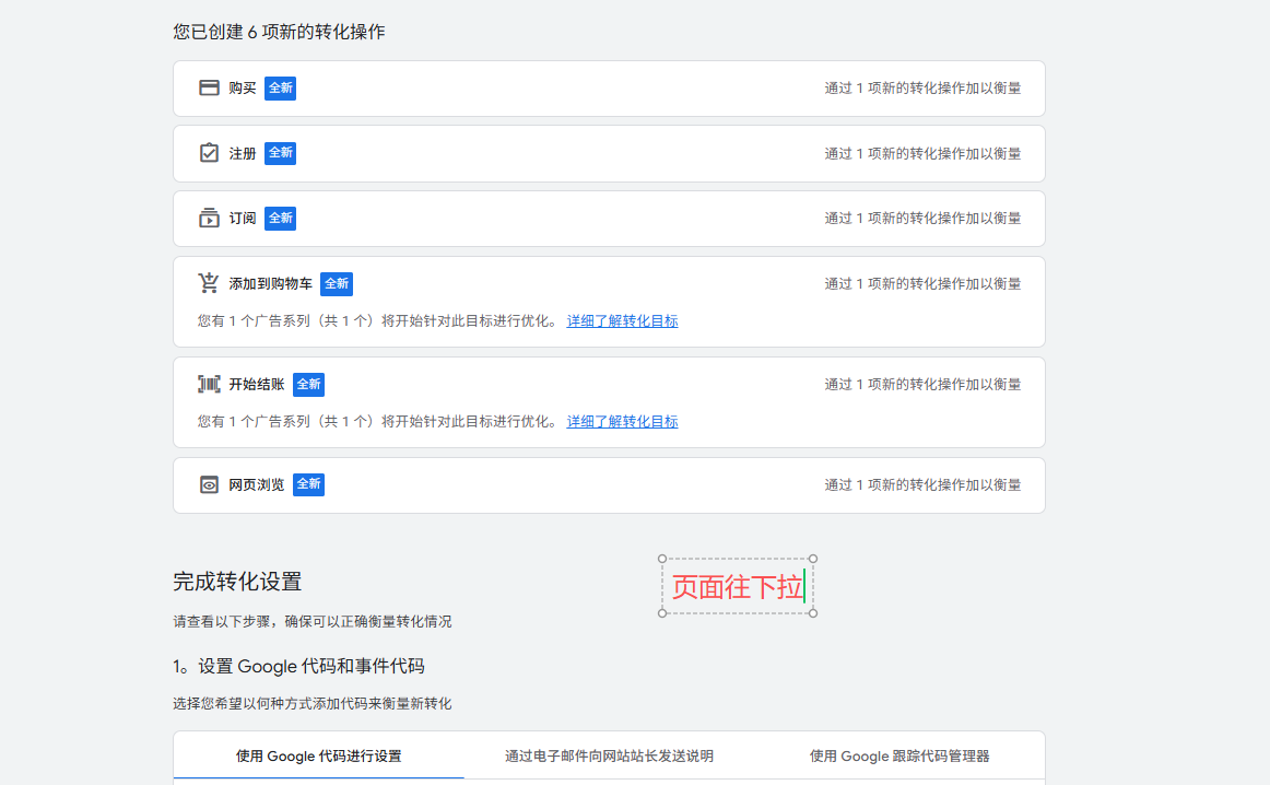 (41)完成一个事件代码的设置之后,返回到谷歌页面,继续查看其他转化目标代码进行复制