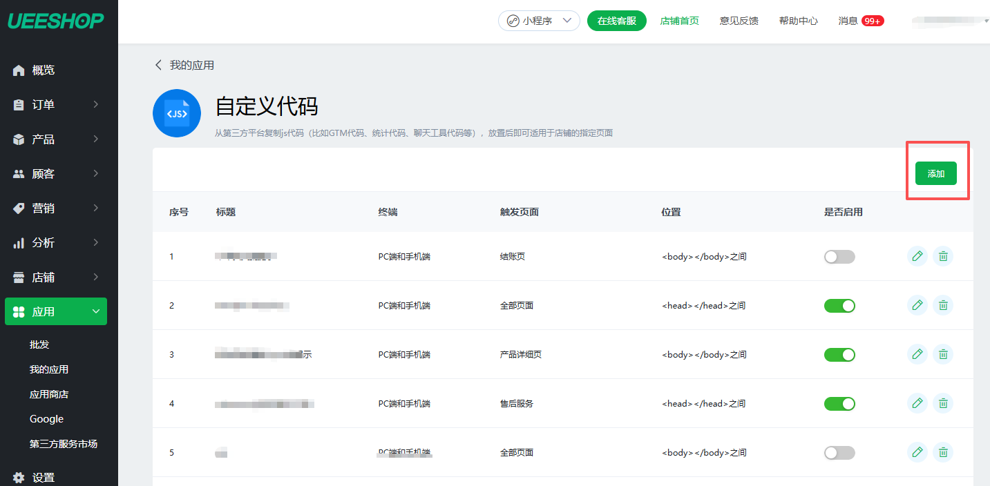 (34)登录后台,应用商店,找到自定义代码进入添加