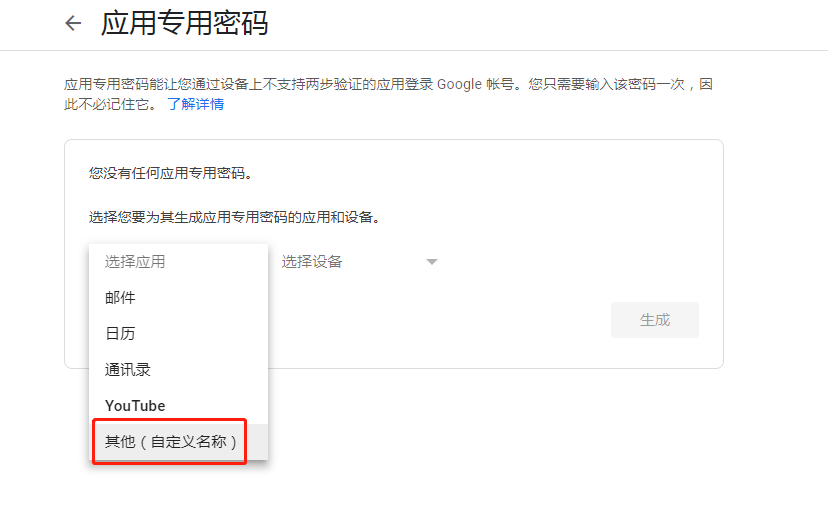 (19)点击应用密码,如果没有找到应用密码入口,可以直接访问这个链接 https://myaccount.google.com/apppasswords