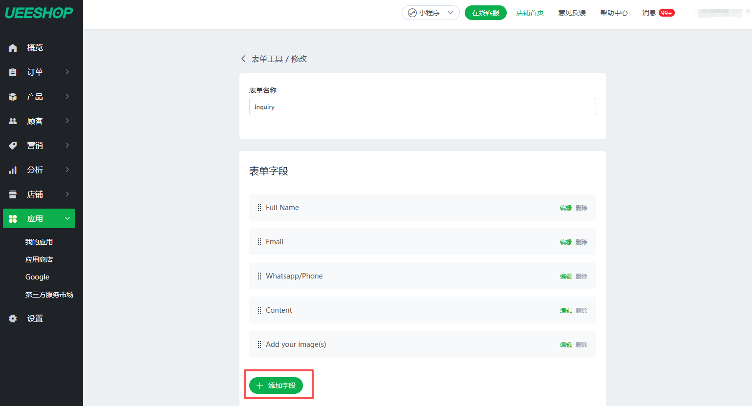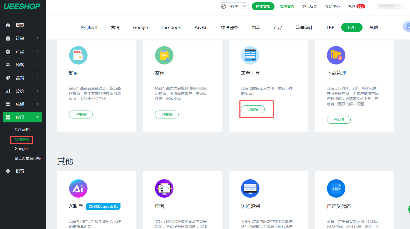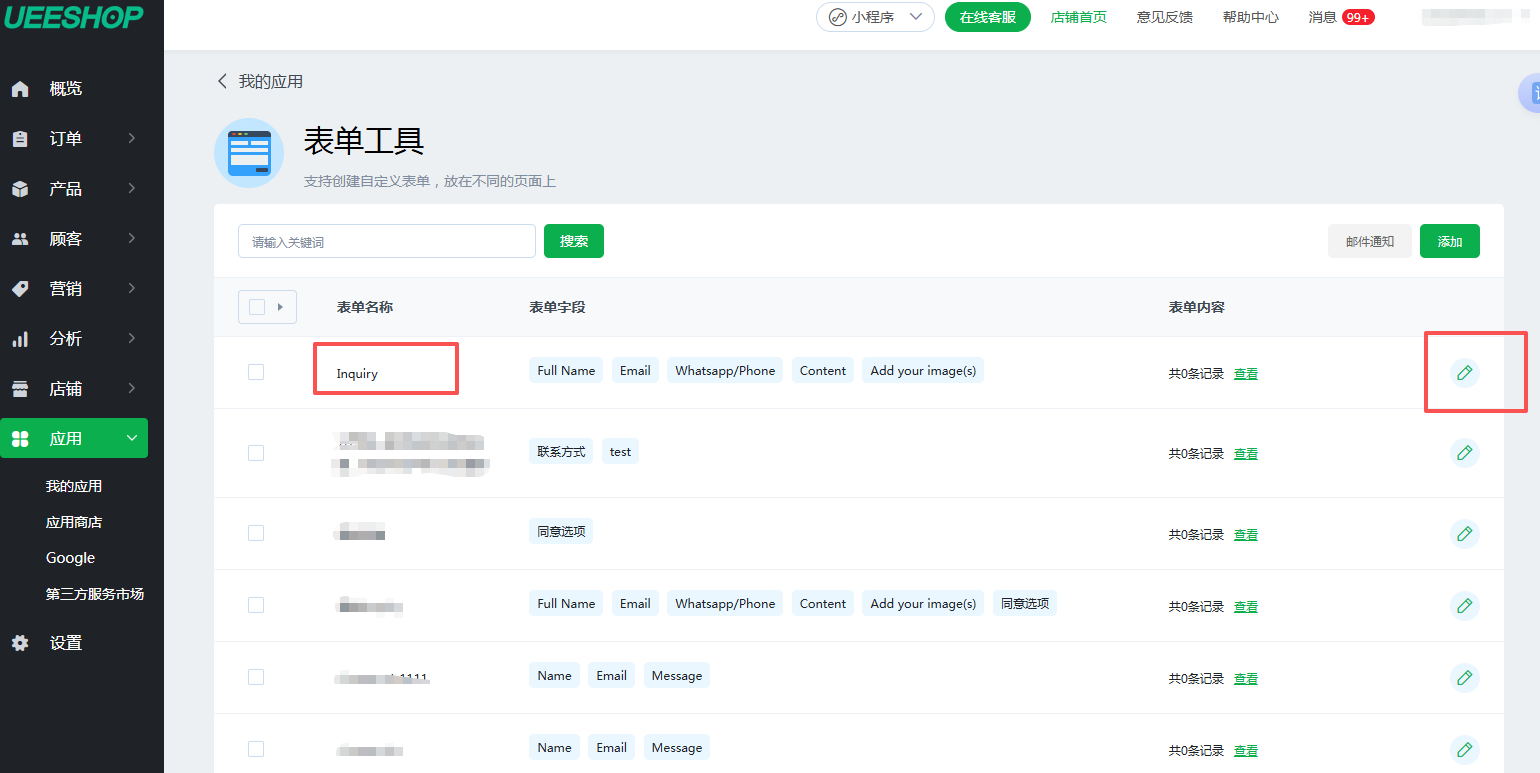 (1)登录网站后台,左侧工具栏,进入应用商店,找到表单工具进入
