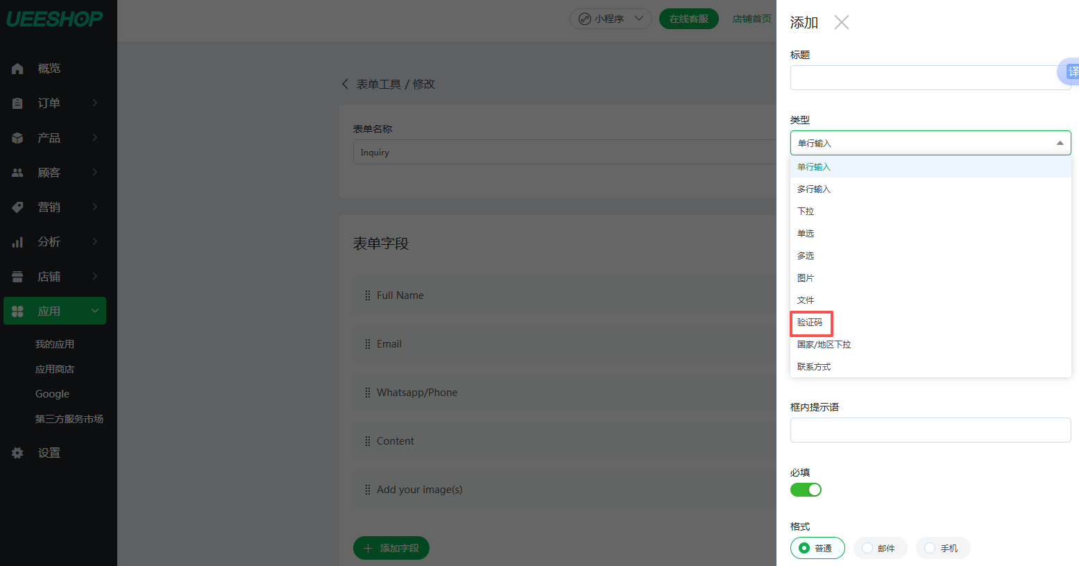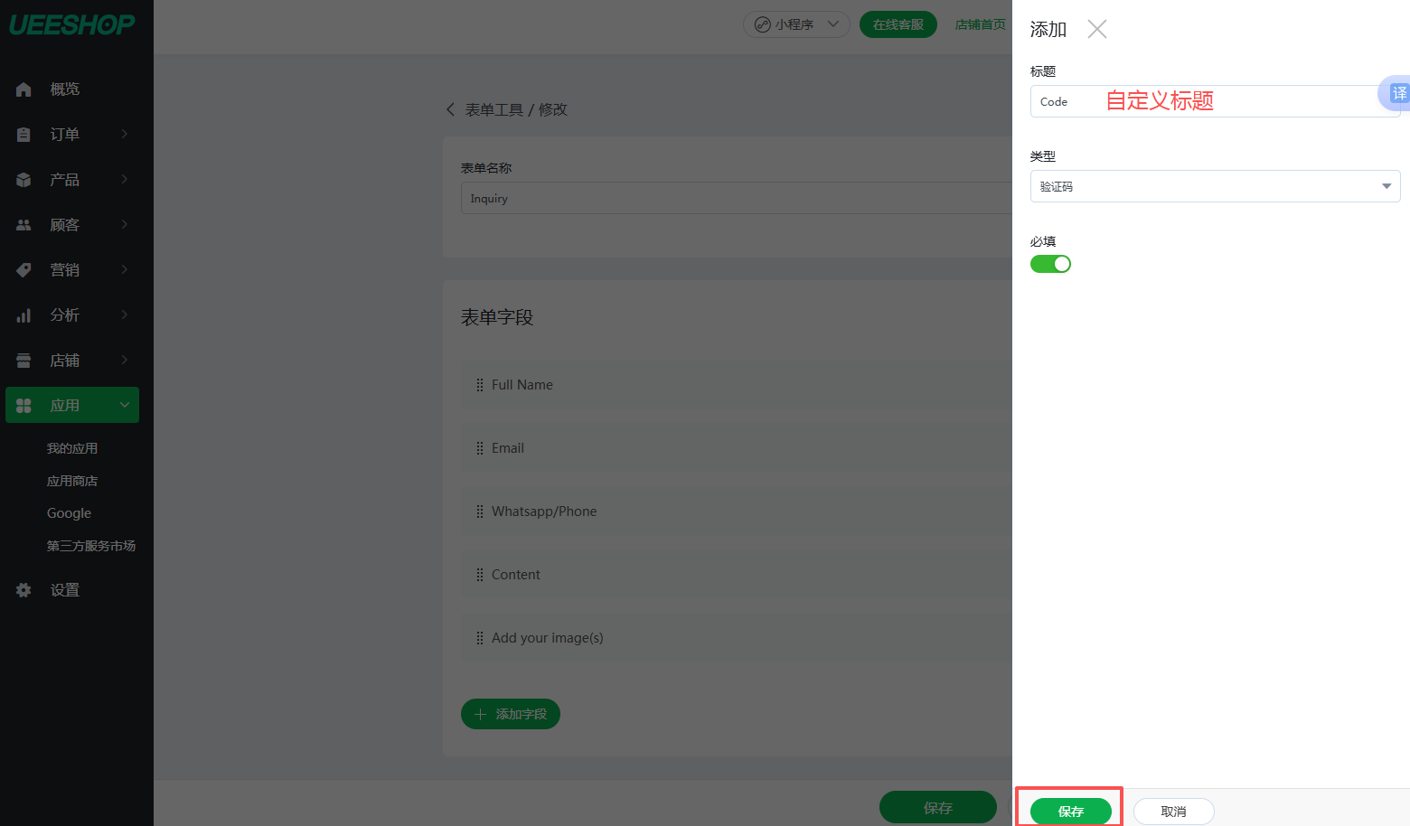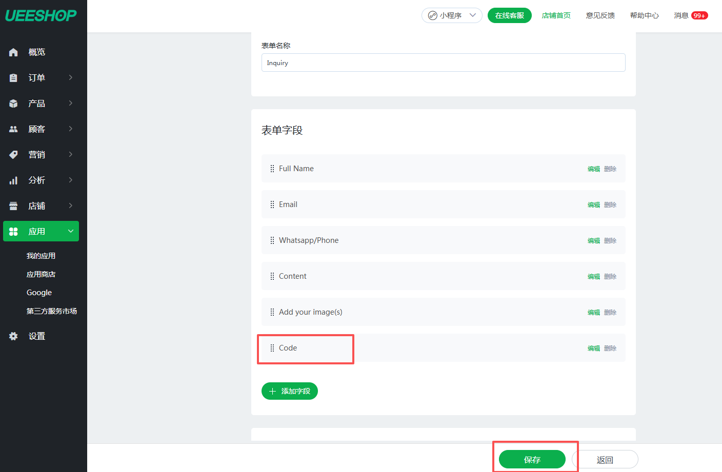 (1)登录网站后台,左侧工具栏,进入应用商店,找到表单工具进入