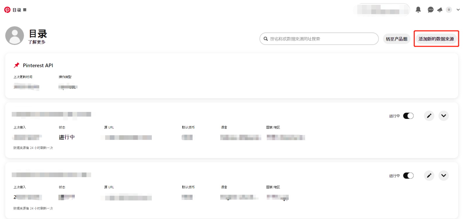 (4)点击pinterest,点击更新feed后,复制XML链接