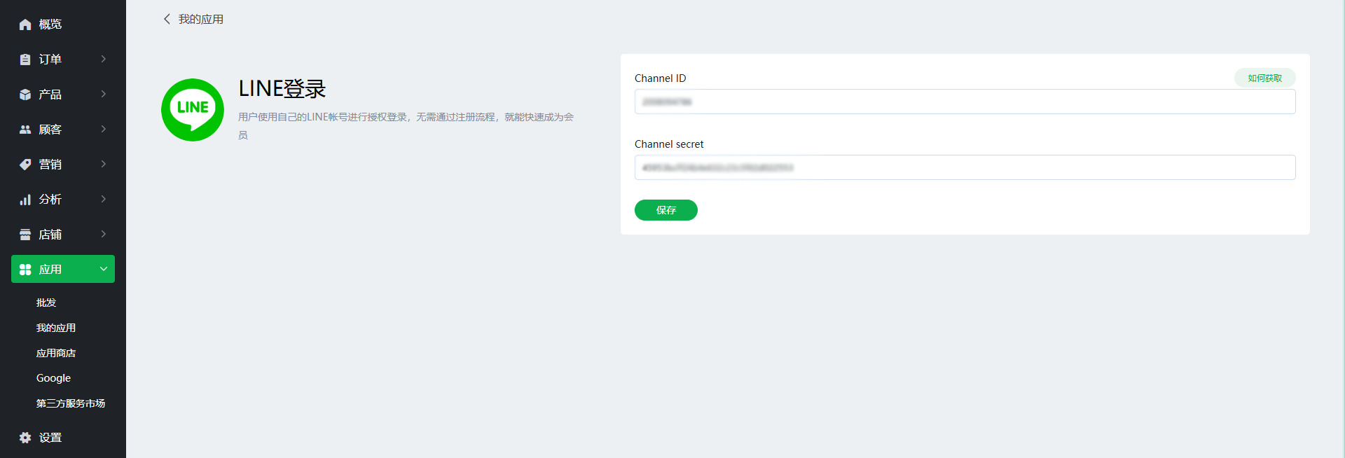 在后台应用商店的“快捷登录”分类中,增加【LINE登录】应用。
