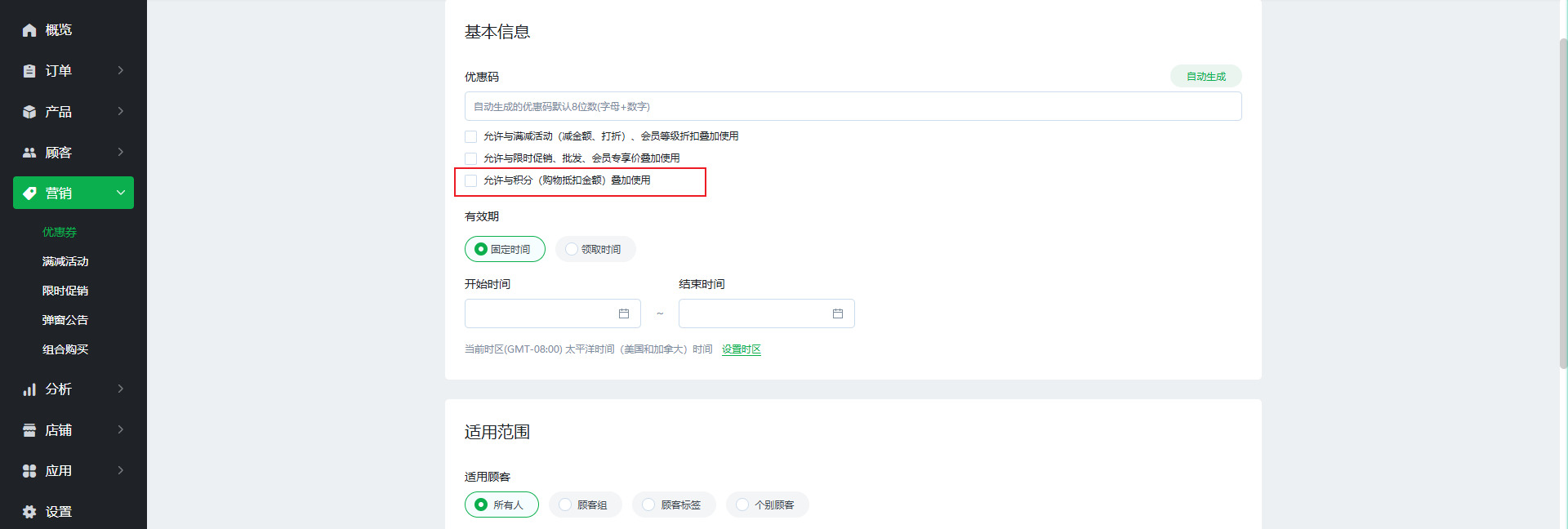 - 如何设置优惠券领取弹窗? 设置产品详情显示优惠券 如何设置未成年提醒弹窗? 如何设置产品组合捆绑促销? 如何设置产品组合购买? 如何设置满减活动?(满额打折) 如何设置产品限时促销? 如何设置满减活动?(满额增品) 如何设置满减活动?(满额减钱) 如何设置弹窗广告绑定优惠券? 如何添加优惠券?