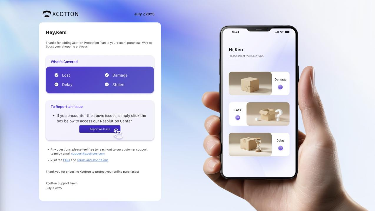 B:商家客服通知xcotton(微信/钉钉/飞书),由xcotton理赔团队联系消费者协助理赔