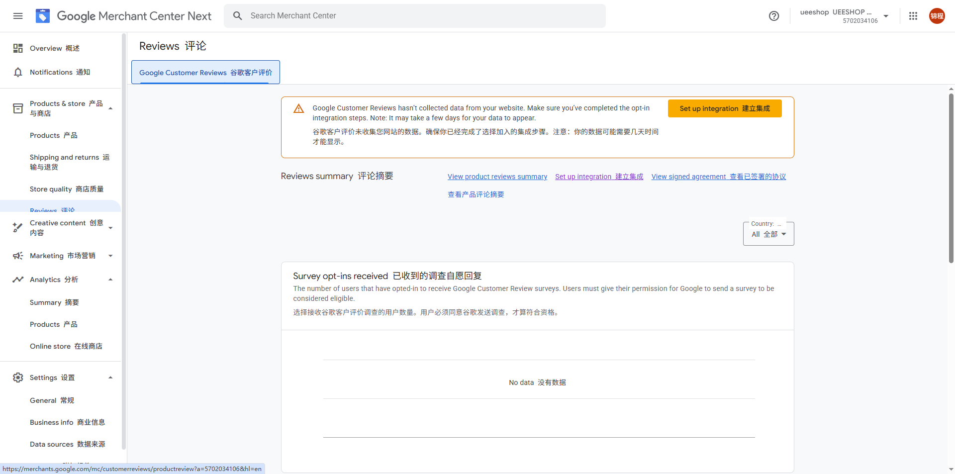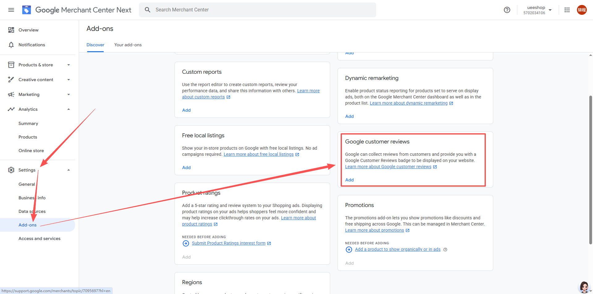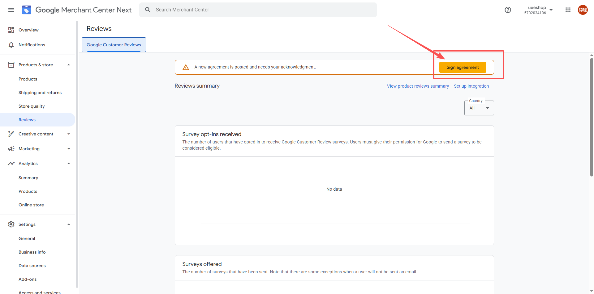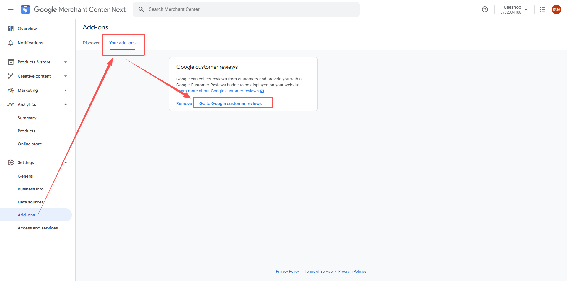 3.登录Google Merchant Center,并进行添加Google Customer Reviews应用与同意协议。